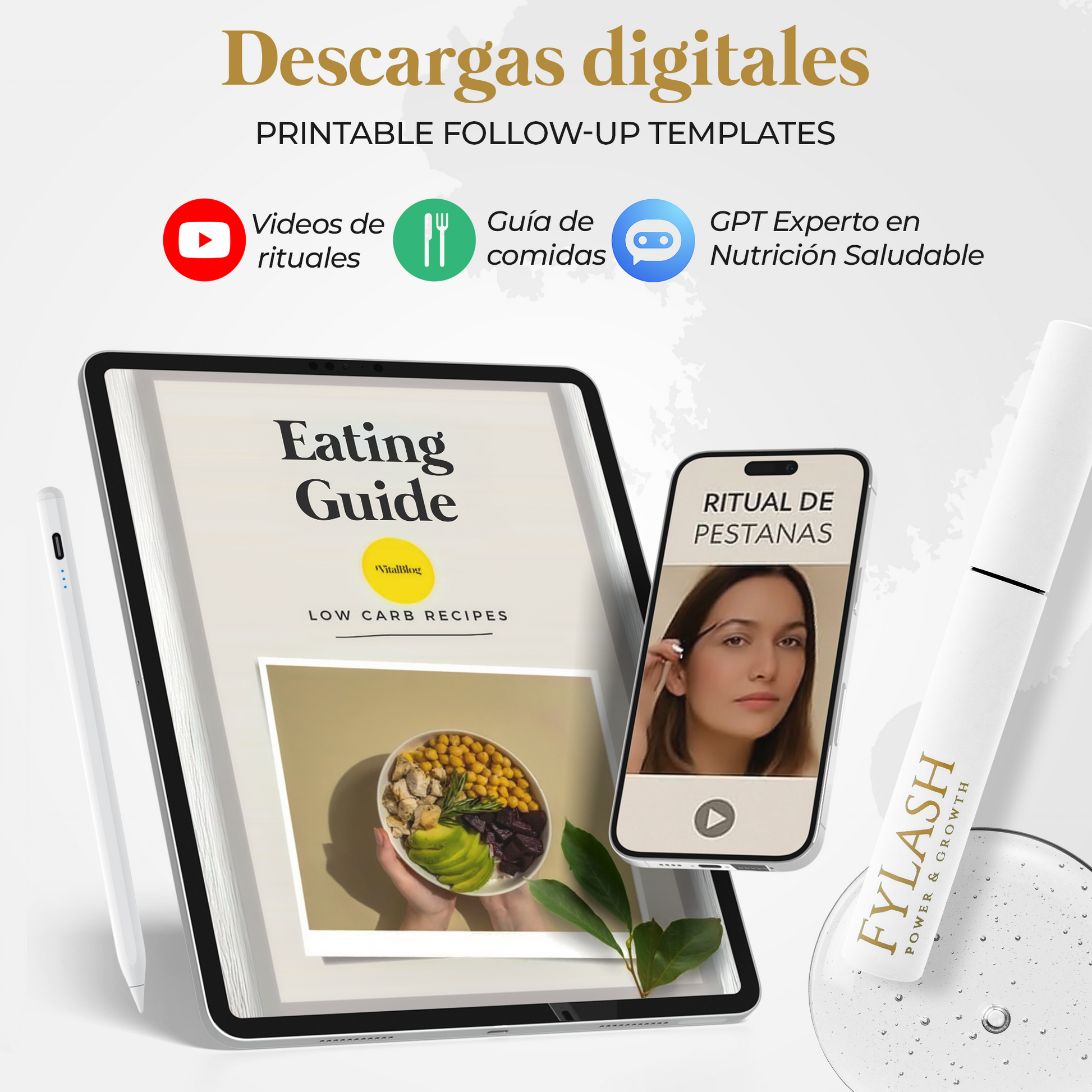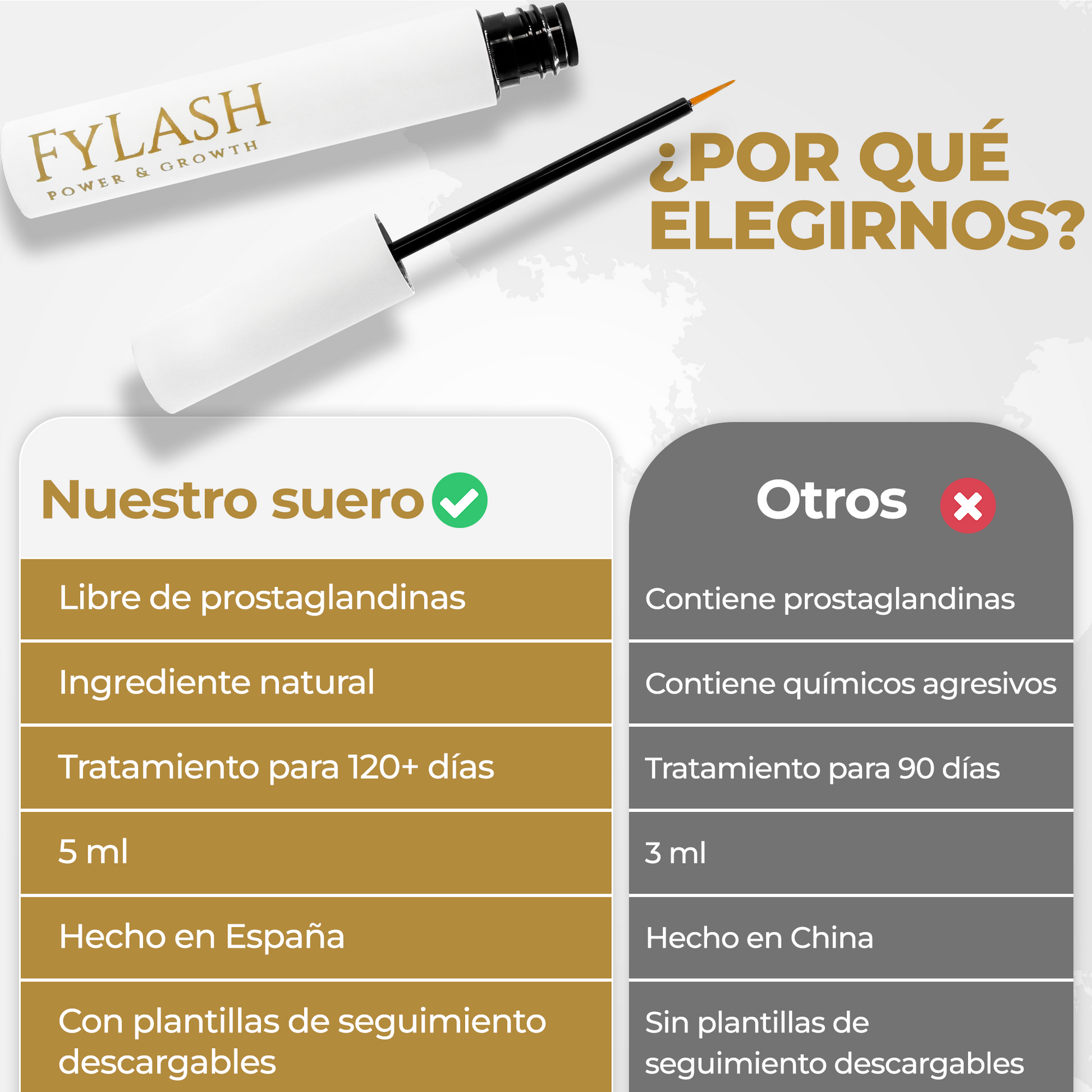 Fylash Serum Pestañas Crecimiento | Tratamiento de 4 Meses para Crecer y Fortalecer tu Mirada de Forma Natural | Sin Prostaglandinas ni Parabenos | Suero de Pestañas con Medidor, Guías y Seguimiento y Plantillas para Mejorar tu Salud