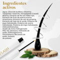 - Acetyl Tetrapeptide-3 + Extracto de Flor de Trébol Rojo: Este complejo estimula las proteínas de la matriz extracelular para un mejor anclaje del vello, ayuda a modular la DHT (relacionada con el acortamiento del ciclo capilar) y reduce la microinflamación. Promueve pestañas más densas y fuertes.